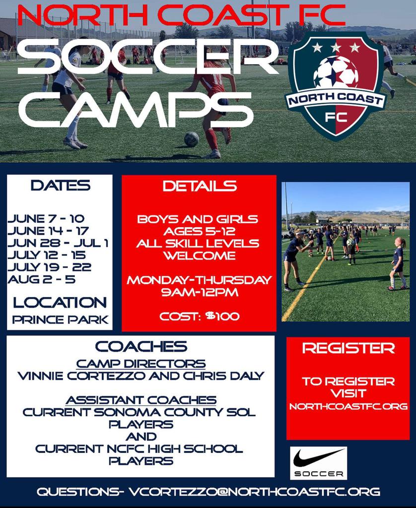 SUMMER CAMPS ARE HERE! Join us this summer for a fun, competitive camp built for everyone to enjoy. Camps will be directed by our directors of coaching Vinnie Cortezzo and Chris Daly along with coaches from our older teams and coaches from our semi pro men’s team @sonomacountysol First camp start next week! Sign up today!…